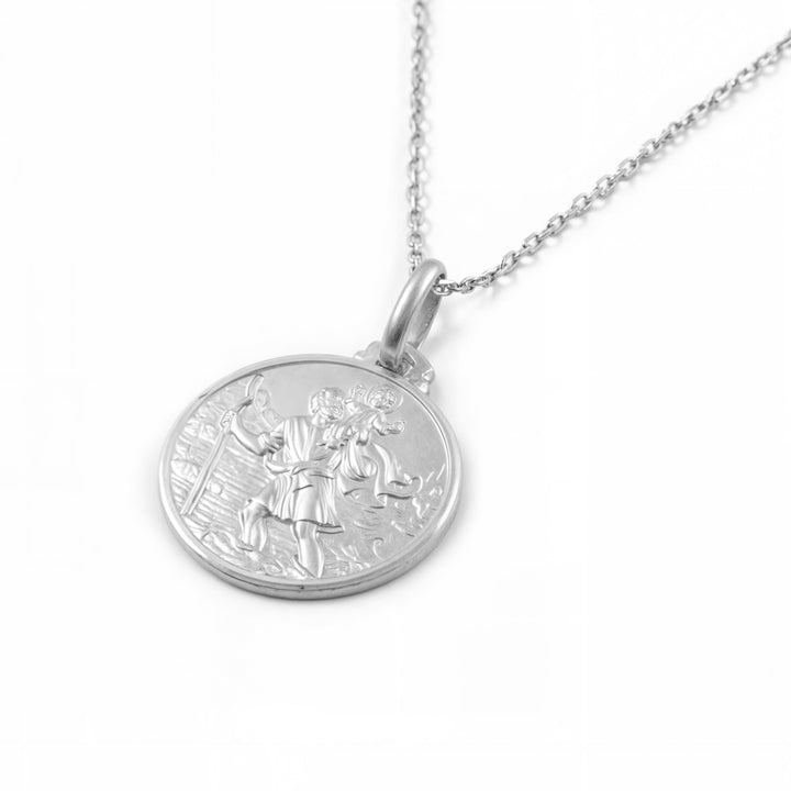 Medaglia ragazza donna argento 925 rotonda San Cristoforo 18 mm opaco e lucido