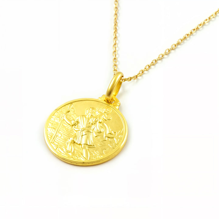 Elaborata con cura in oro di alta qualità, il suo design di 16 mm di diametro la rende un accessorio delicato e versatile, perfetto per donne e ragazze. L'immagine di San Cristoforo, patrono dei viaggiatori, aggiunge un significato speciale, rendendo questa medaglia un gioiello unico e significativo.