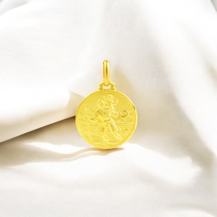 Realizzata in oro giallo di 9 carati, questa medaglia presenta una finitura opaca e lucida che mette in risalto la sua bellezza unica. La rappresentazione di San Cristobal, conosciuto come il santo dei viaggiatori, aggiunge un tocco speciale, offrendo non solo un accessorio, ma anche un messaggio profondo di sicurezza e guida spirituale. Inoltre, la sua dimensione compatta di 12 x 12 mm consente di abbinarla facilmente ad altri gioielli o di indossarla da sola per uno stile più minimalista.