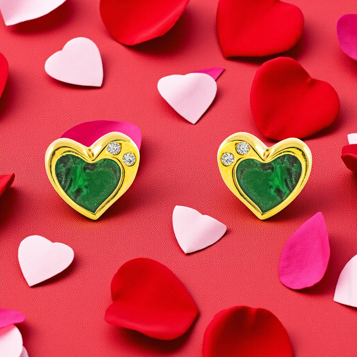 Orecchini bambina cuore pietra malachite verde brillante Oro Giallo 9K