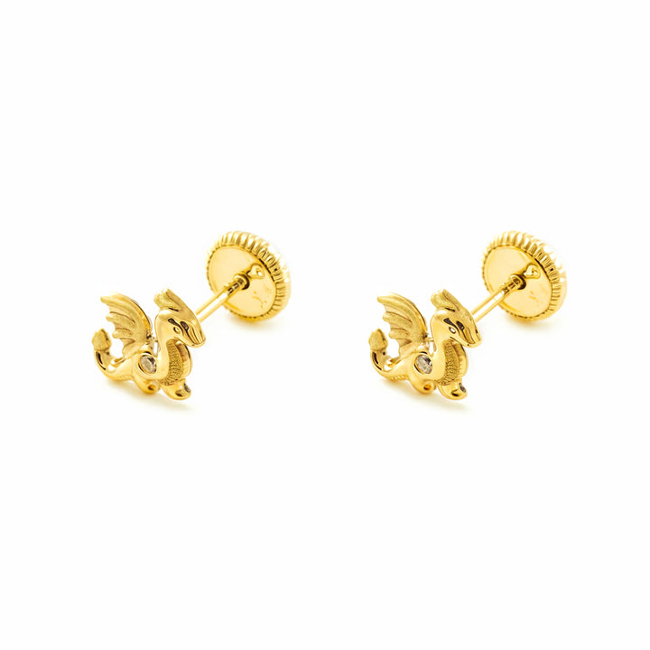 Orecchini bambina drago pietra zirconia opaca e lucida Oro Giallo 9K