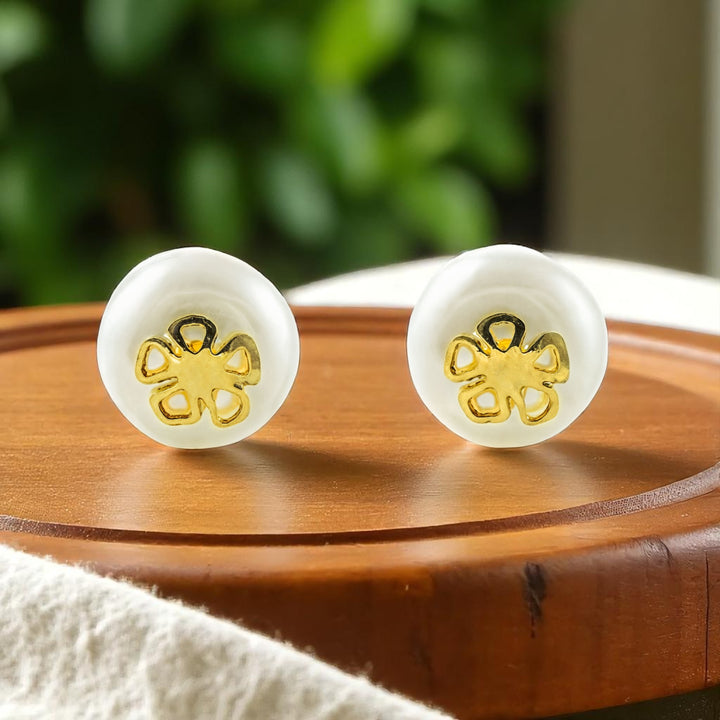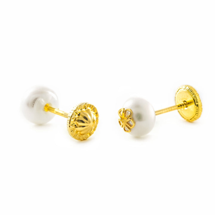 Pendientes Niña oro Amarillo 9K Flor Perla Natural Botón Brillo