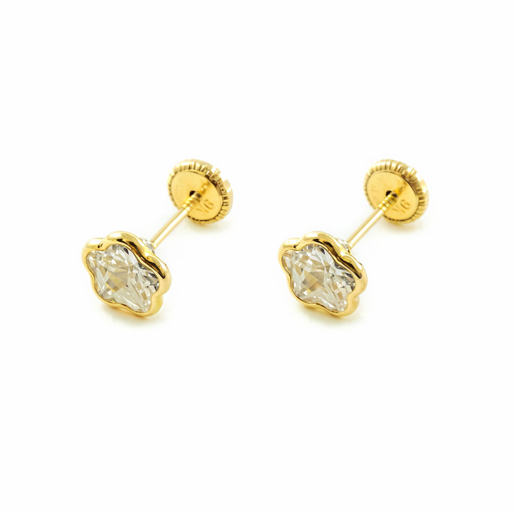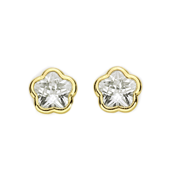 Scopri la delicatezza e il fascino degli orecchini per bambina in oro giallo 9K a forma di fiore. Questo design senza tempo combina il calore dell'oro con il brillante sottile della zirconia, creando un gioiello perfetto per occasioni speciali o per il giorno per giorno. La sua finitura lucida esalta la luminosità di ogni dettaglio, apportando un tocco di eleganza e dolcezza.