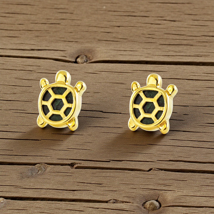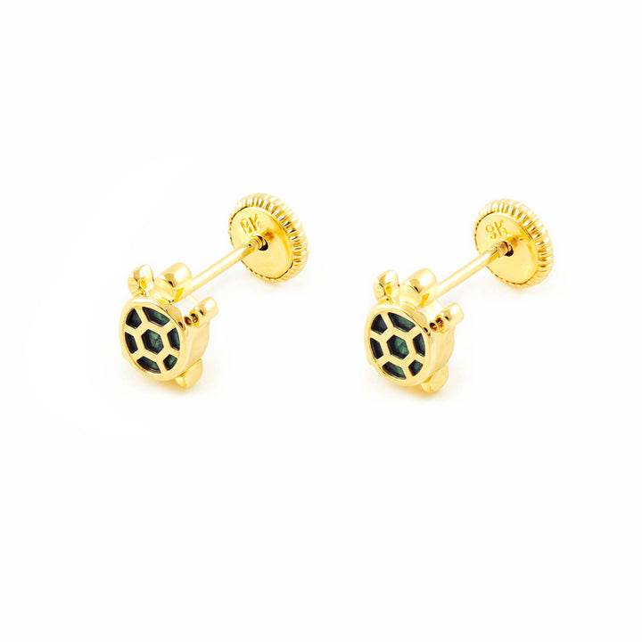 Pendientes Niña oro Amarillo 9K Tortuga Piedra Malaquita Verde Brillo
