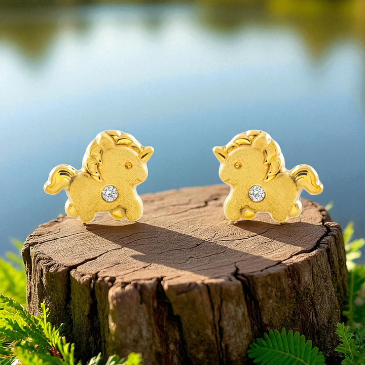 Orecchini bambina unicorno pietra zirconia opaca e lucida Oro Giallo 9K