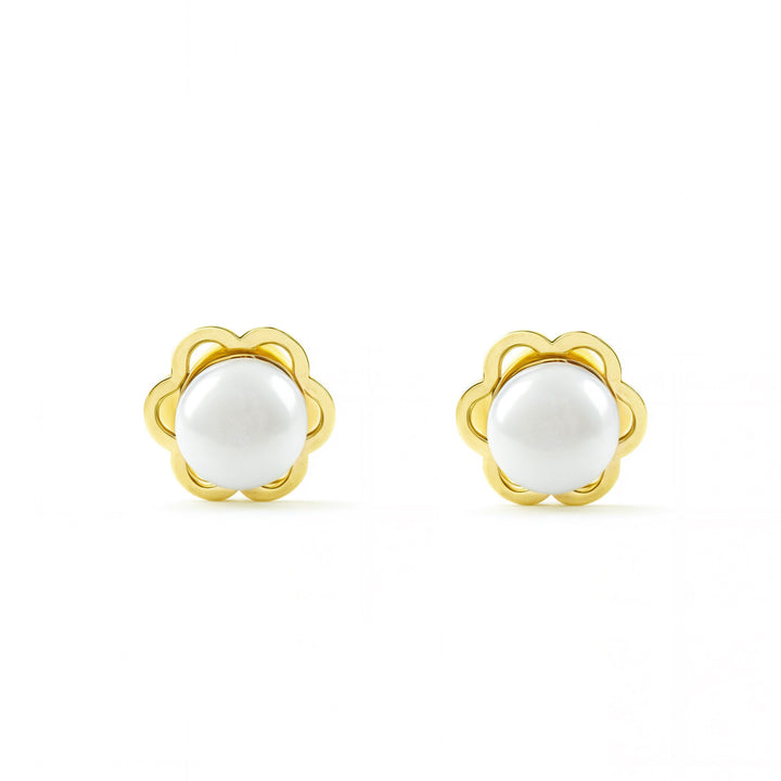 Orecchini bambini ragazza Fiore Perla 3 mm Oro Giallo 18K