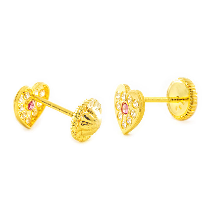 Scopri la delicatezza dei nostri Orecchini Bebe-Ragazza in Oro Giallo 18K, progettati appositamente per le piccole di casa. Questo incantevole paio di orecchini presenta un brillante cuore adornato con zirconie e un elegante rubino sintetico, offrendo un tocco di colore e sofisticatezza a qualsiasi outfit. Ideali per occasioni speciali o per l'uso quotidiano, questi orecchini sono un regalo perfetto che sicuramente farà sorridere le più giovani.