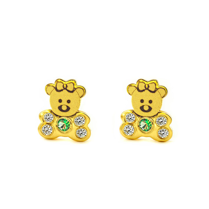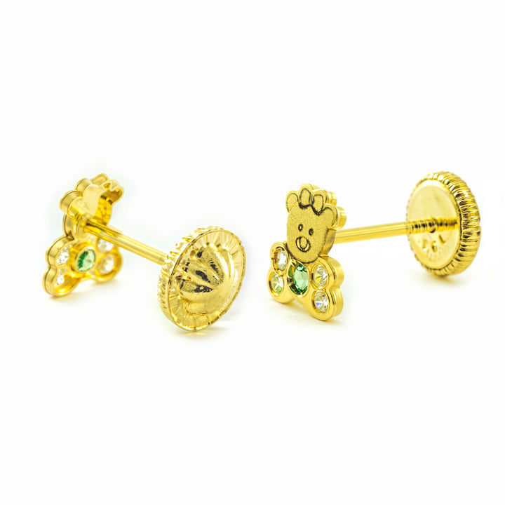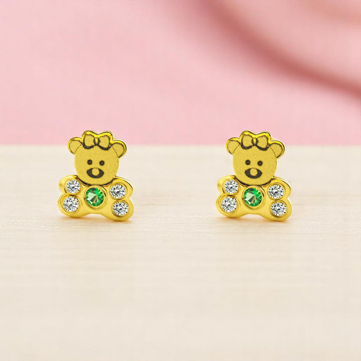 Creato con attenzione ai dettagli, ogni pezzo presenta un bellissimo orso adornato con zirconie brillanti e smeraldo sintetico, che aggiunge un tocco giovanile e vibrante. Il comfort e la sicurezza sono prioritari, poiché questi orecchini sono progettati specificamente per l'uso da parte di neonati e bambine, garantendo che siano leggeri e sicuri per l'uso quotidiano.