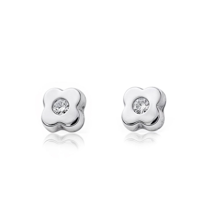 Orecchini bambini Trifoglio Zircone Oro Bianco 9K