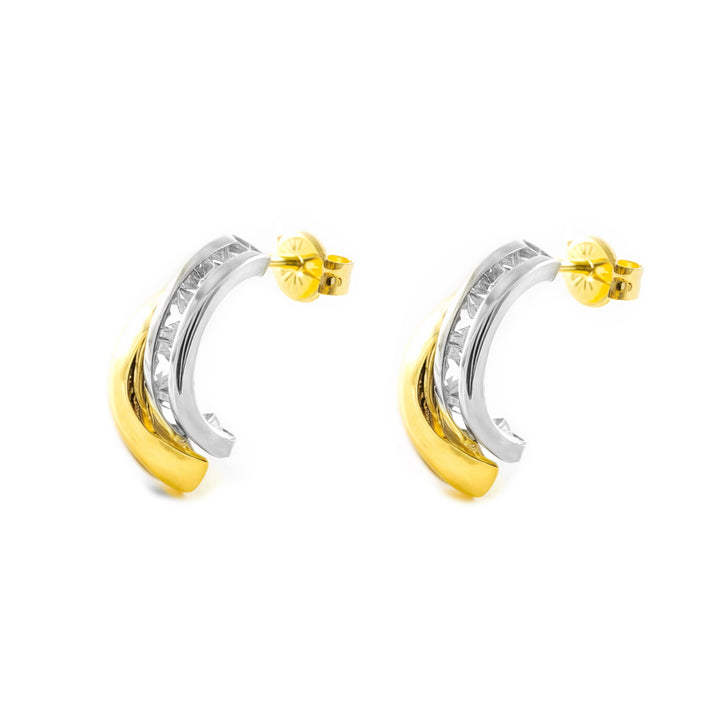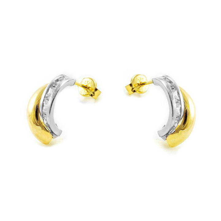 Orecchini donna oro Bicolore 9K bande pietra Zirconia brillante