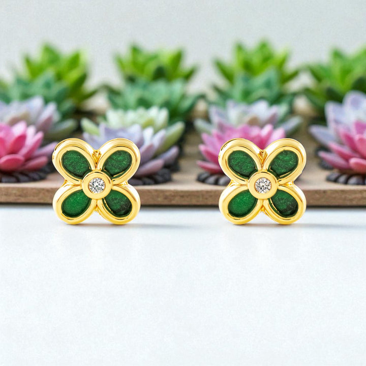 Scopri l'eleganza senza tempo degli Orecchini in oro giallo 9K a forma di quadrifoglio, arricchiti con brillanti pietre di zirconia. Il loro design delicato e sofisticato li rende il complemento perfetto per ogni occasione, apportando un tocco di luce e distinzione al tuo stile quotidiano.