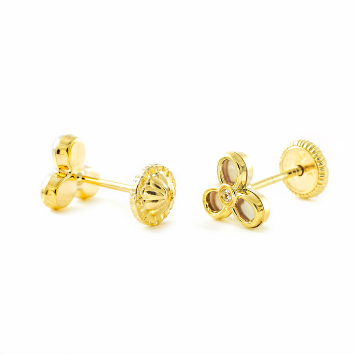Pendientes oro Amarillo 9K Trébol Nácar Madre Perla Brillo
