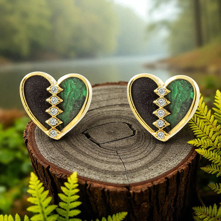 La malachite, conosciuta per il suo vibrante tono verde, si combina perfettamente con il caldo splendore dell'oro giallo, creando un pezzo armonioso e sofisticato. Il suo design a forma di cuore simboleggia l'amore e la tenerezza, rendendo questi orecchini il regalo perfetto per ragazze e donne che apprezzano i dettagli unici e pieni di significato.