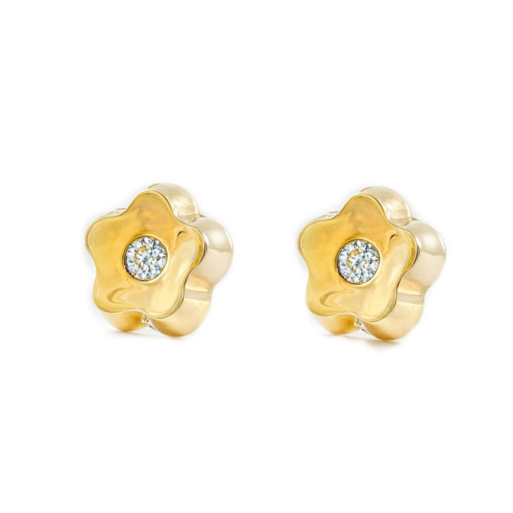 Pendientes Niña Oro Amarillo Flor en circonita (9kts)