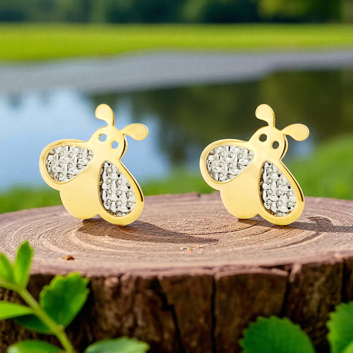 Orecchini ragazza donna oro Bicolore 9K Farfalla Brillante e Testurizzato