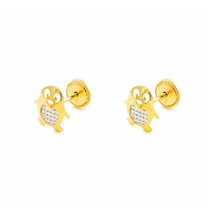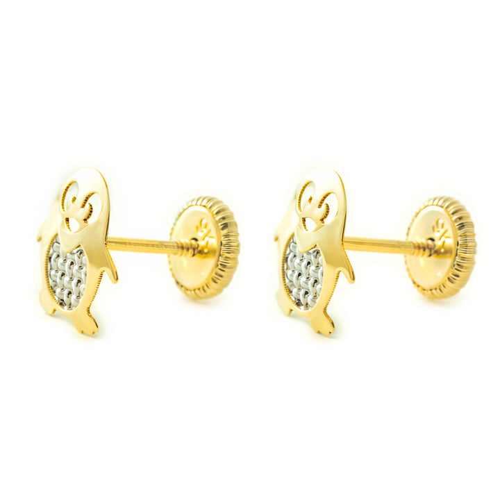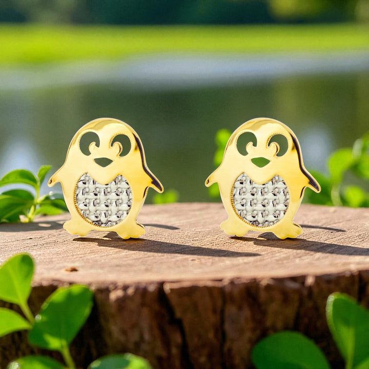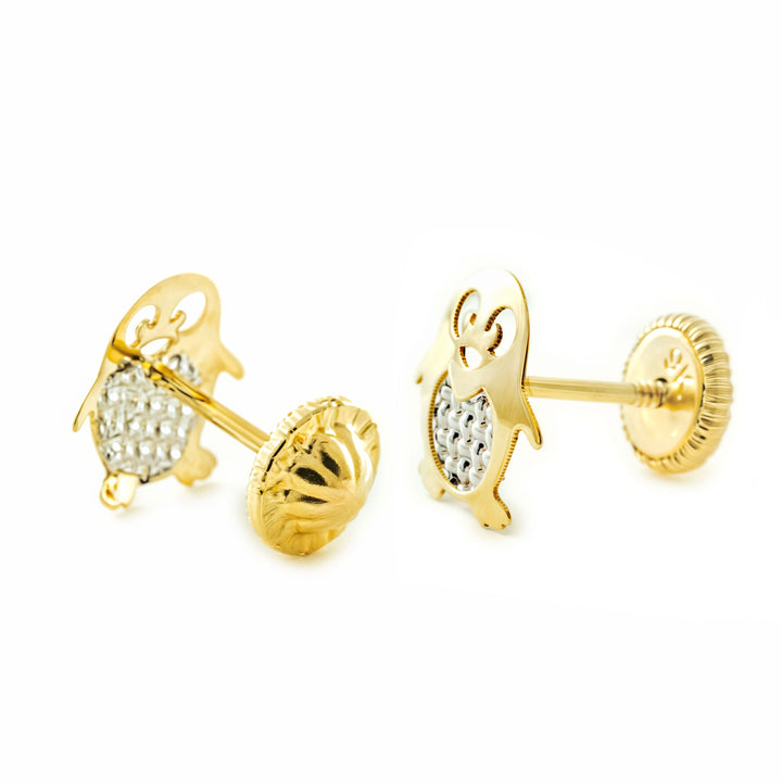 Pendientes Niña Mujer oro Bicolor 9K Pingüino Brillo y Textura