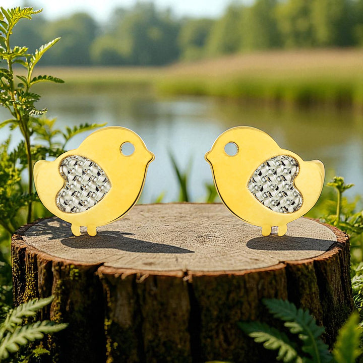 Orecchini ragazza donna oro Bicolore 9K Uccello Brillante e Testurizzato