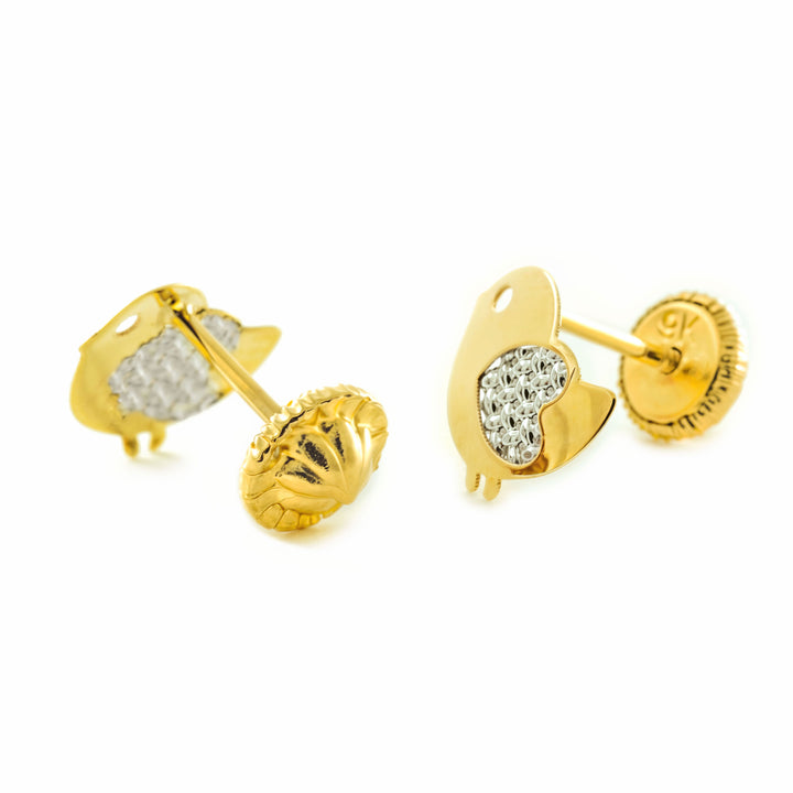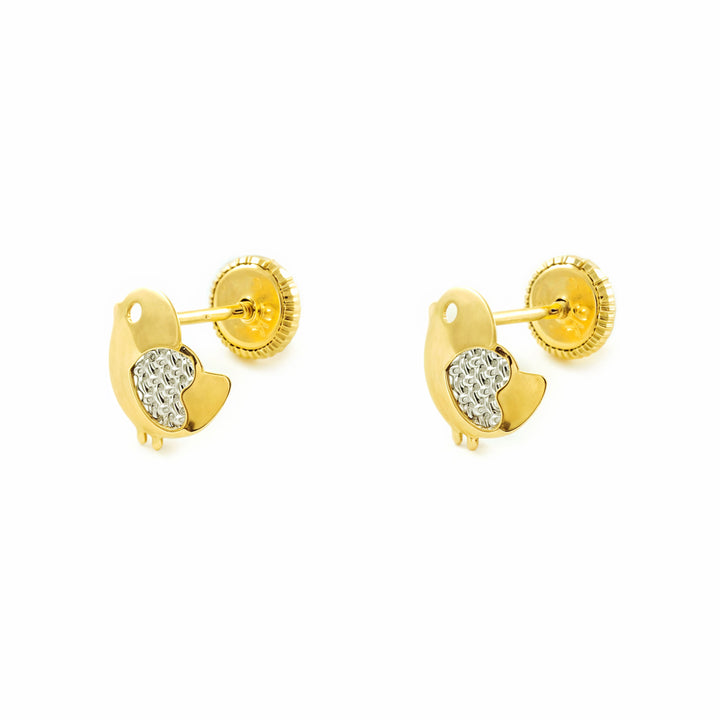 Pendientes Niña Mujer oro Bicolor 9K Pajaro Brillo y Textura