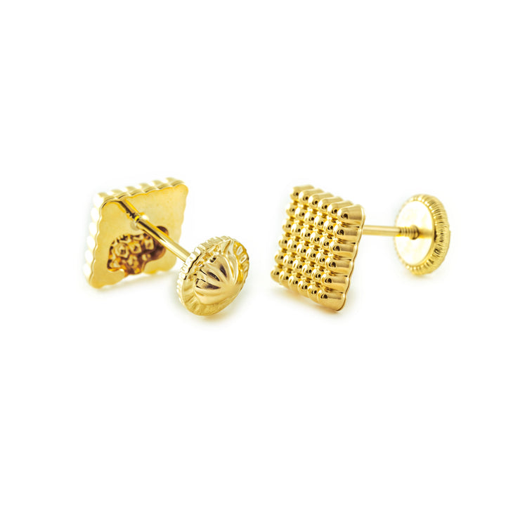 Pendientes Niña Mujer oro Amarillo 9K Cuadrado Brillo