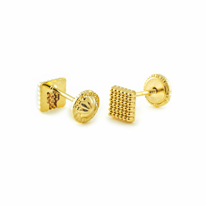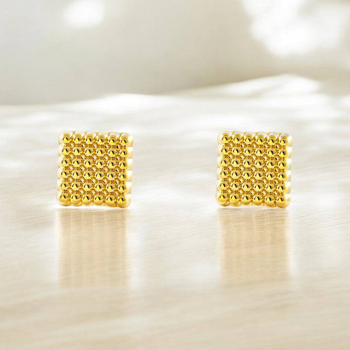 Questi orecchini sono stati accuratamente realizzati in oro giallo 9 carati, garantendo durata e un'eccezionale lucentezza. La loro forma quadrata e le dimensioni compatte li rendono comodi e versatili, ideali sia per ragazze che per donne che cercano uno stile delicato e moderno.