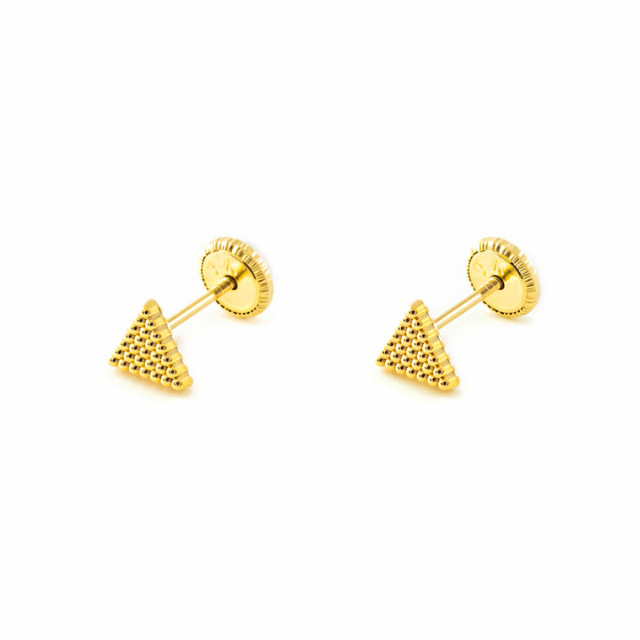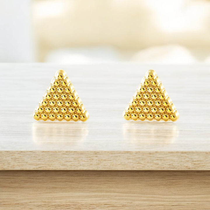Realizzati in oro 9 carati, questi orecchini si distinguono per la loro durata e il loro colore giallo intenso, che non passa mai di moda. La finitura lucida potenzia il bagliore dell'oro, mentre la forma triangolare apporta originalità e freschezza al tuo look. Ideali sia per bambine che per donne che cercano accessori delicati e versatili.