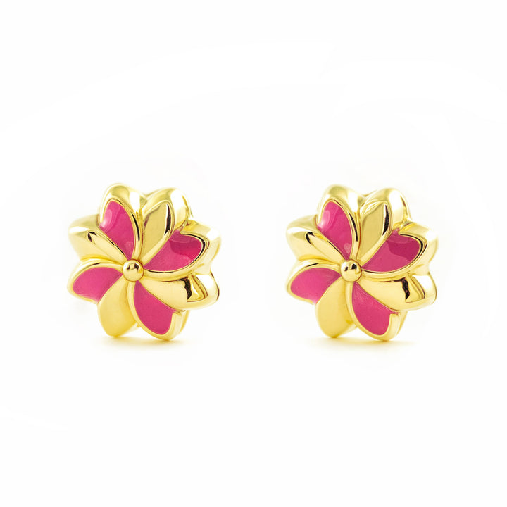 Pendientes oro amarillo niña Flor Esmaltada Rosa